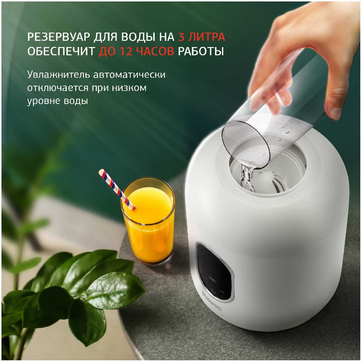 - Резервуар на 3 литра позволяет работать до 12 часов непрерывно (при среднем режиме), что подтверждается пользователями.