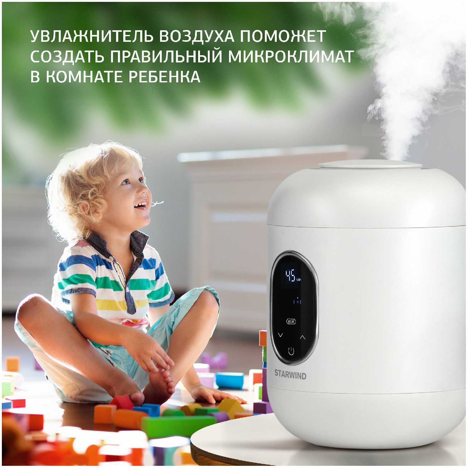 - Медленный набор влажности (с 22% до 45% за 30 минут) в просторных комнатах.