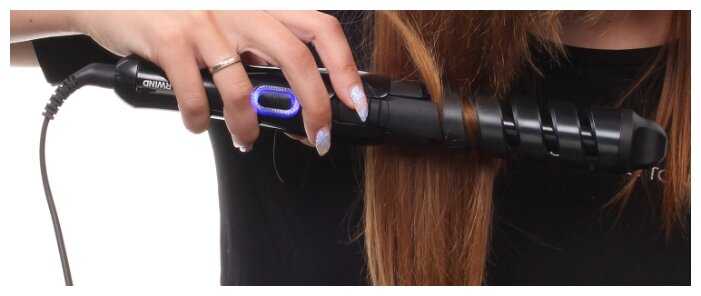 - Волосы сами накручиваются через прорези, процесс занимает 30-40 секунд на локон.