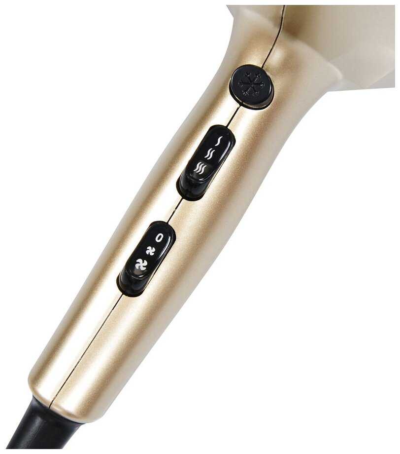 - + Отдельная клавиша подачи холодного воздуха. 3 температурных и скоростных режима. Золотой окрас мой любимый.