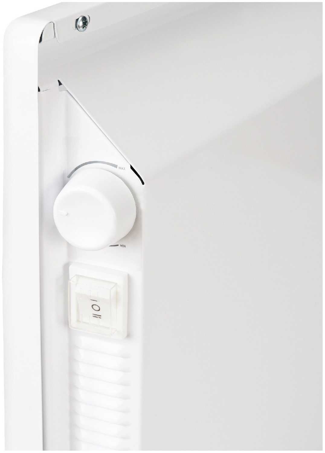 Управление полностью механическое: тумблер выбора мощности (1000/2000 Вт) и поворотный термостат для регулировки температуры. Пользователи отмечают, что разобраться можно без инструкции — система простая даже для пожилых людей. Индикатор включения помогает определить рабочее состояние. -