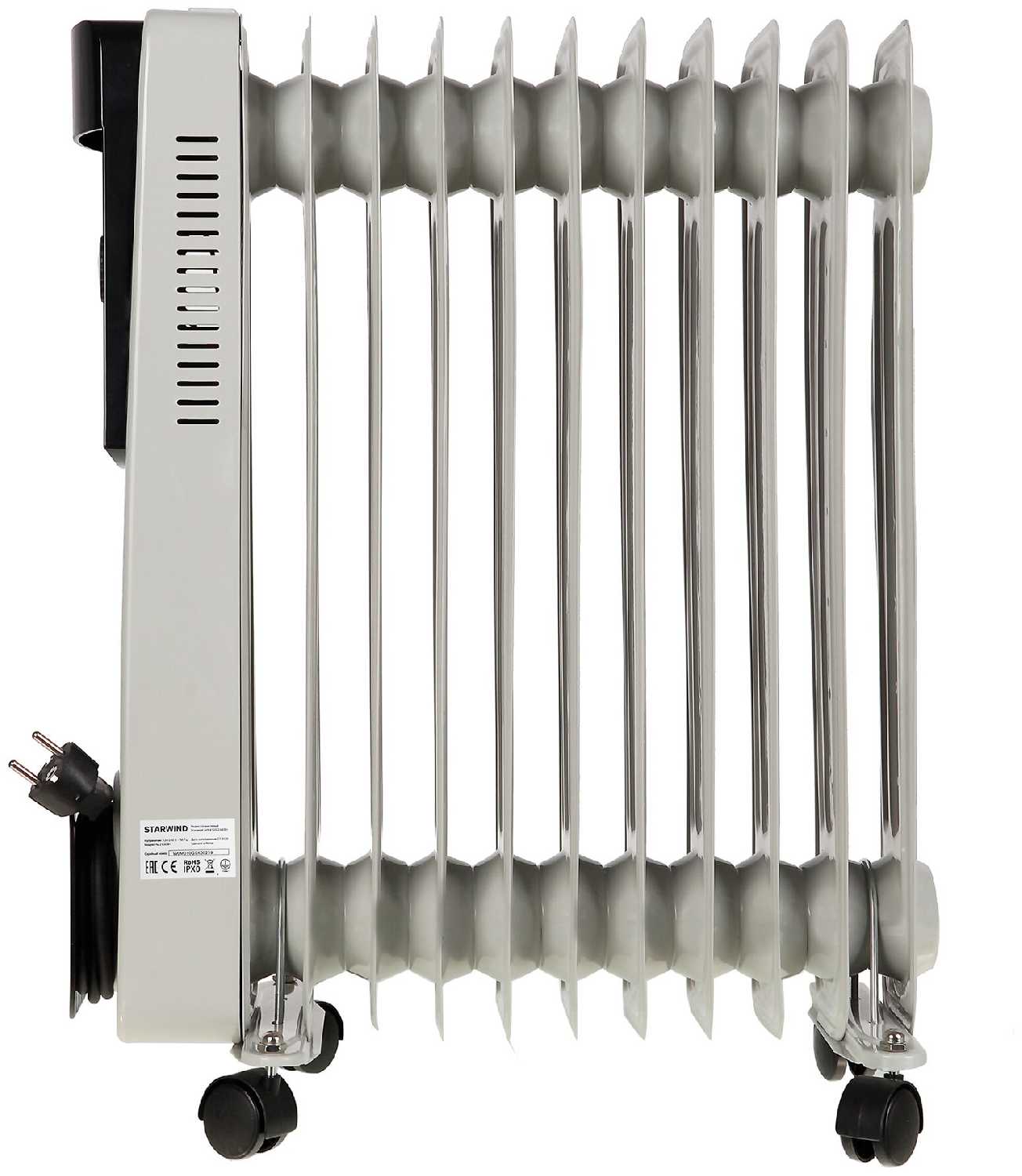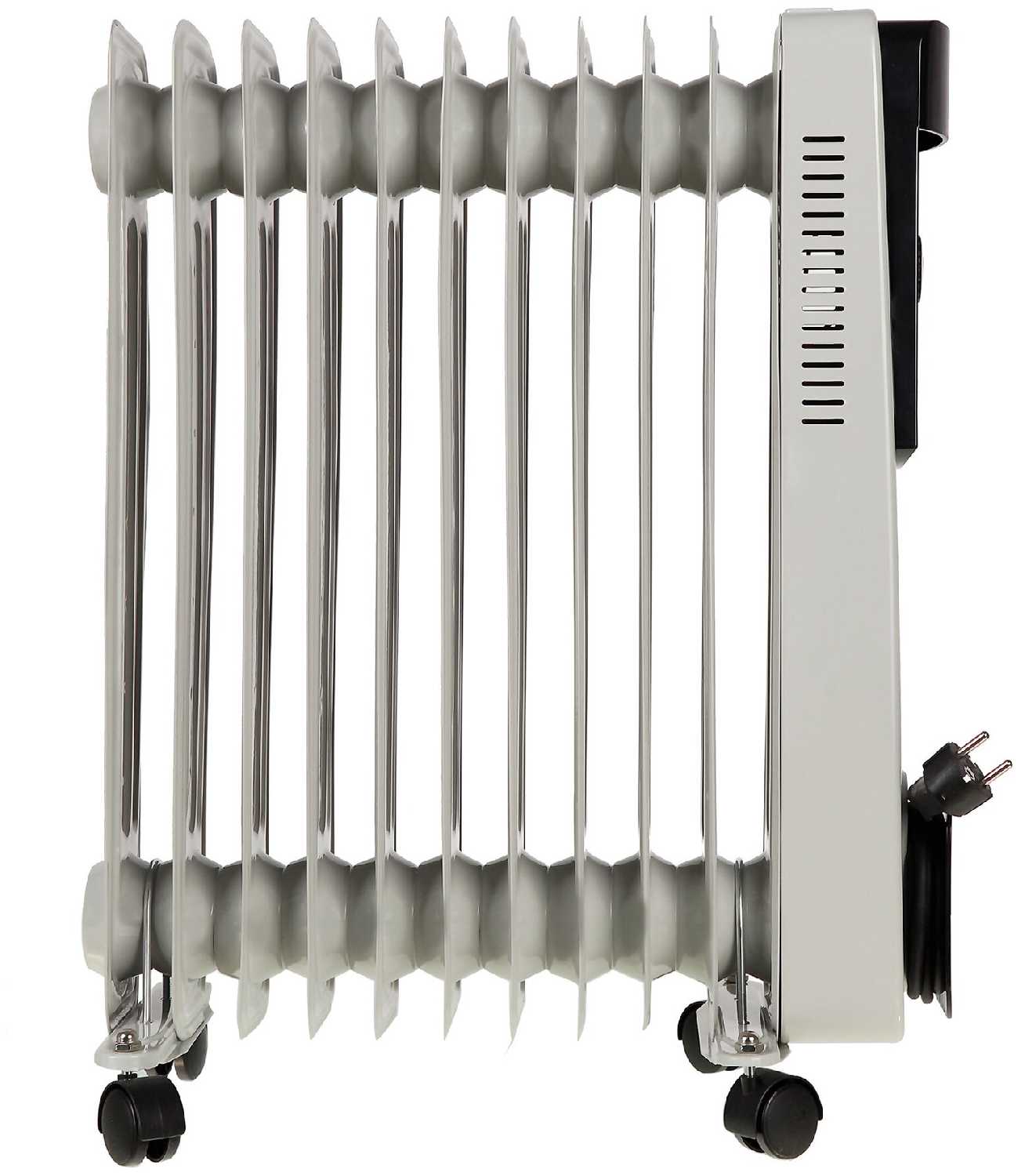 - + Много секций и мощный в 2500 Вт, благодаря чему может обогреть большую комнату.