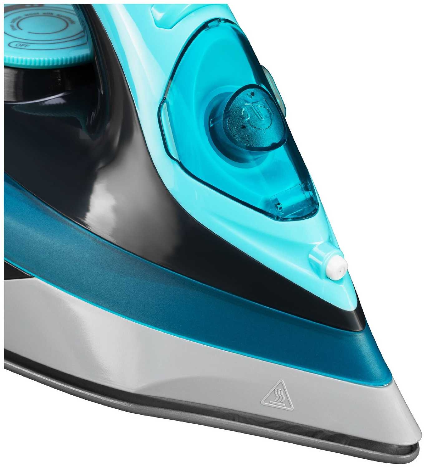Чисто внешне привлек прежде всего его бирюзовый, красивый цвет пластика. Также не могла не отметить особую форму подошвы утюга чуть зауженные края для того, чтобы легко проглаживать складки, узкие детали одежды. Его удобно держать в руке, а еще он довольно легкий.