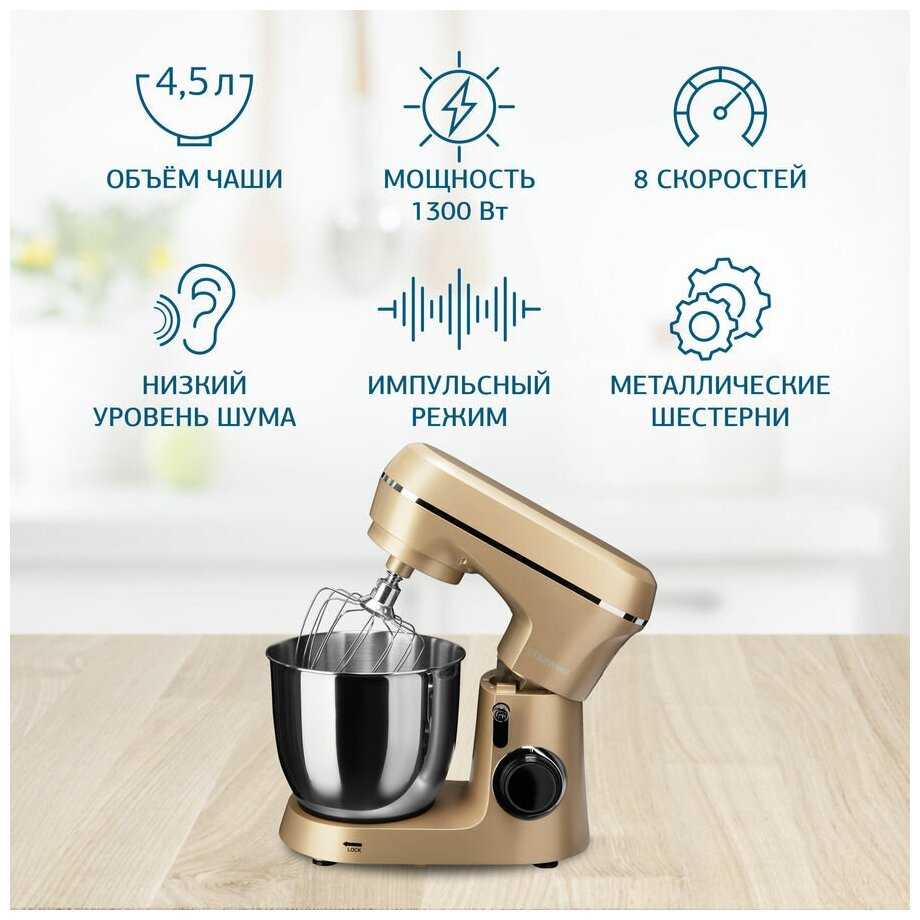 - Обеспечивает быстрое взбивание белков (до устойчивых пиков за 5–7 минут) и замес плотного теста (например, для пельменей или хлеба).