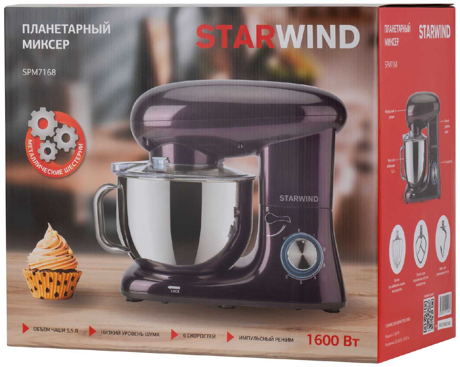 - Мощный двигатель 1600 Вт для эффективного замеса и взбивания: