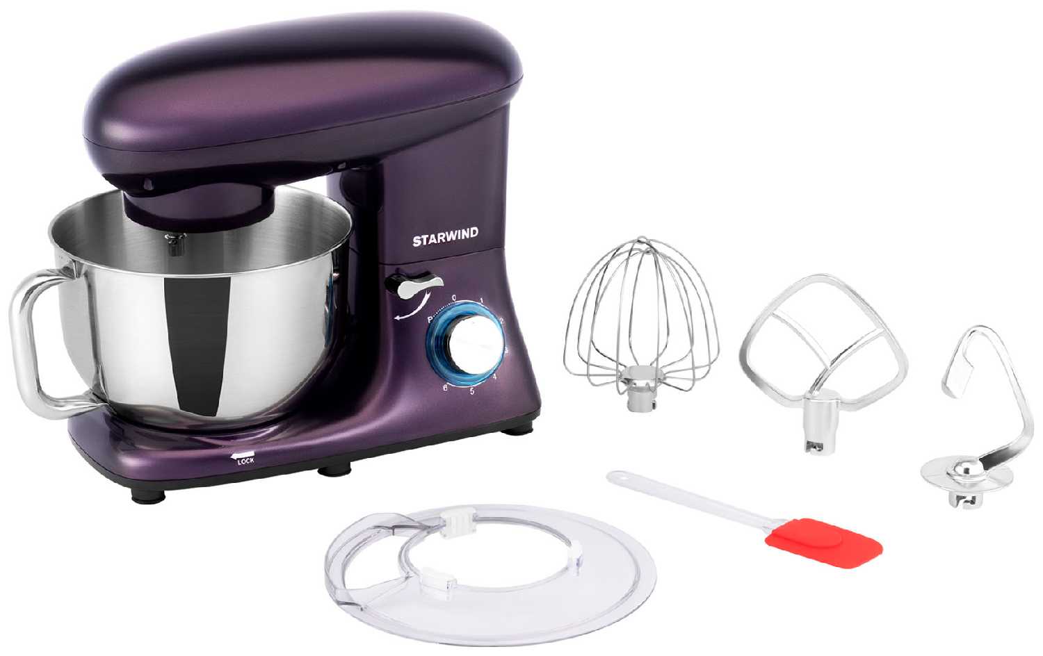 - Полностью металлические насадки (венчик, крюк, лопатка) с износостойким покрытием: