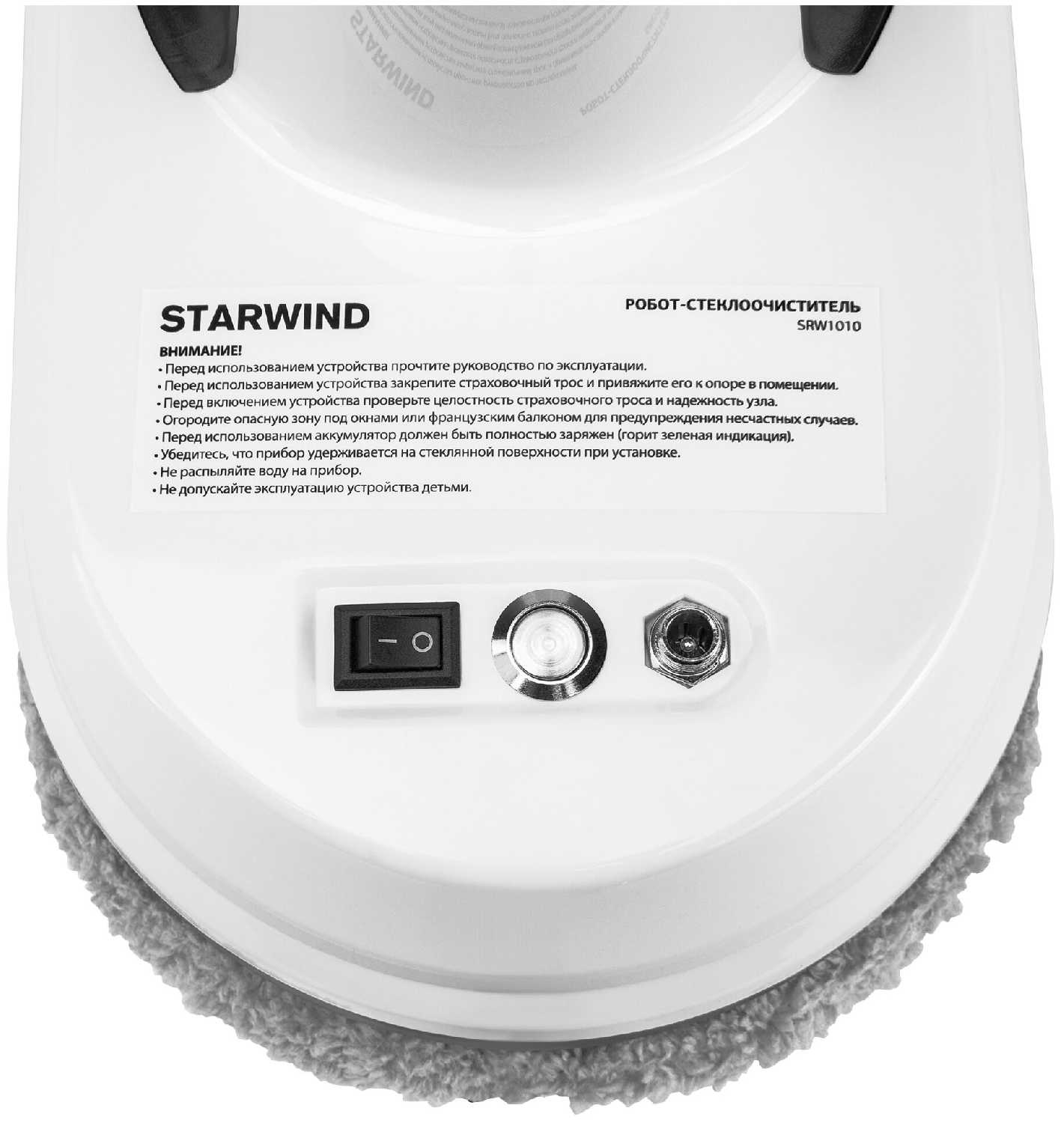 - Страховочный трос длиной 1.5 м позволяет закрепить робота на раме, минимизируя риск падения с внешней стороны окон.