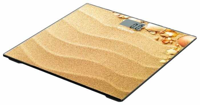 Может стоя на них и не почувствуешь себя словно на пляже, но всё равно над внешним видом тут конечно поработали хорошо - песок волнами словно после прибоя а также ракушки сверху смотрятся волшебно. С технической частью как я уже написала всё хорошо - весы долго не думают, массу показывают правильно. Пусть они и не покажут в % содержание мышечной массы и так далее, зато цена небольшая да и подобные вещи это скорее баловство чем реальная необходимость.