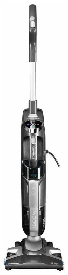- + Достаточно мощный пылесос, паровая швабра помогает справиться с различными загрязнениями. Ручной отпариватель хорошо работает.