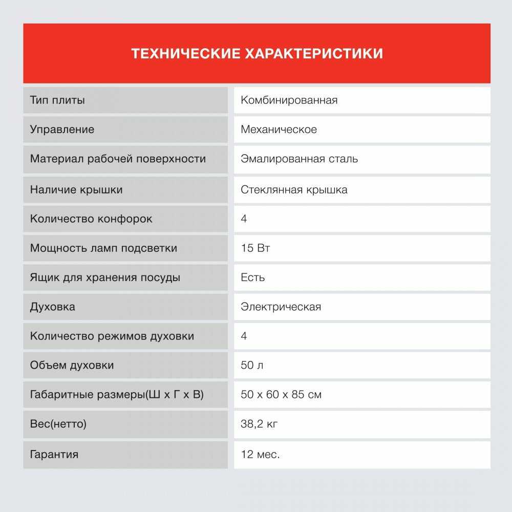 - количество конфорок: 4