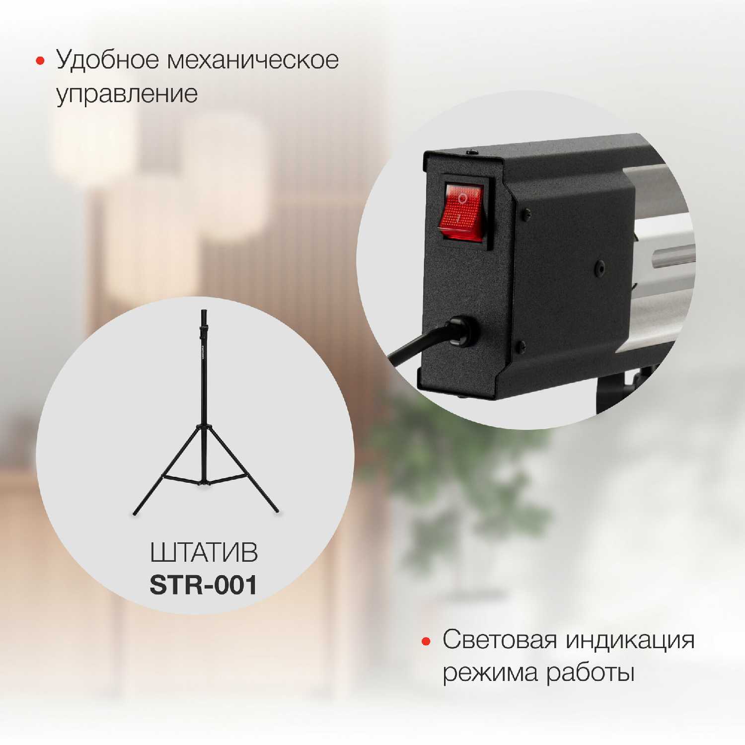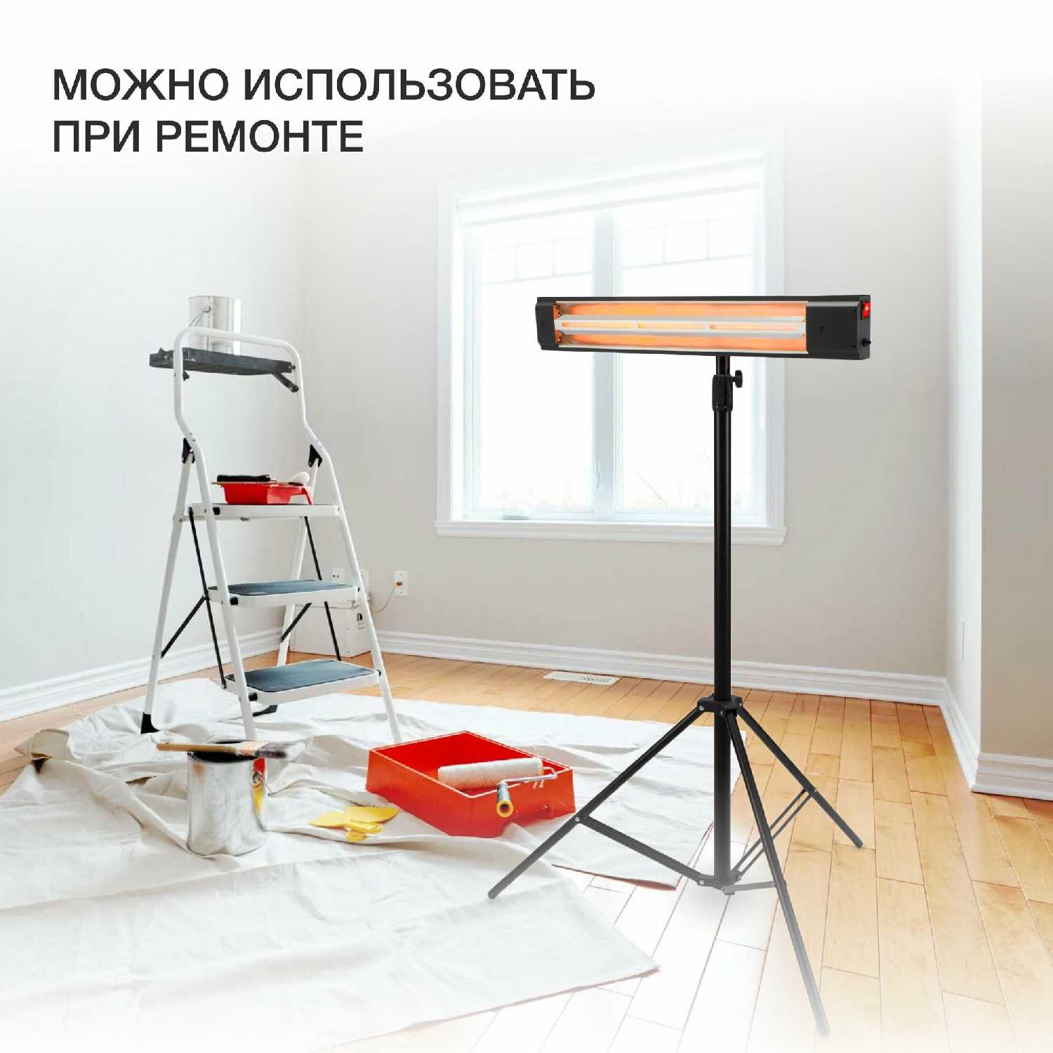 - + Хорошая эффективность, за счёт треноги можно поставить в любое место, любой угол, до 20 квадратов работает эффективно
