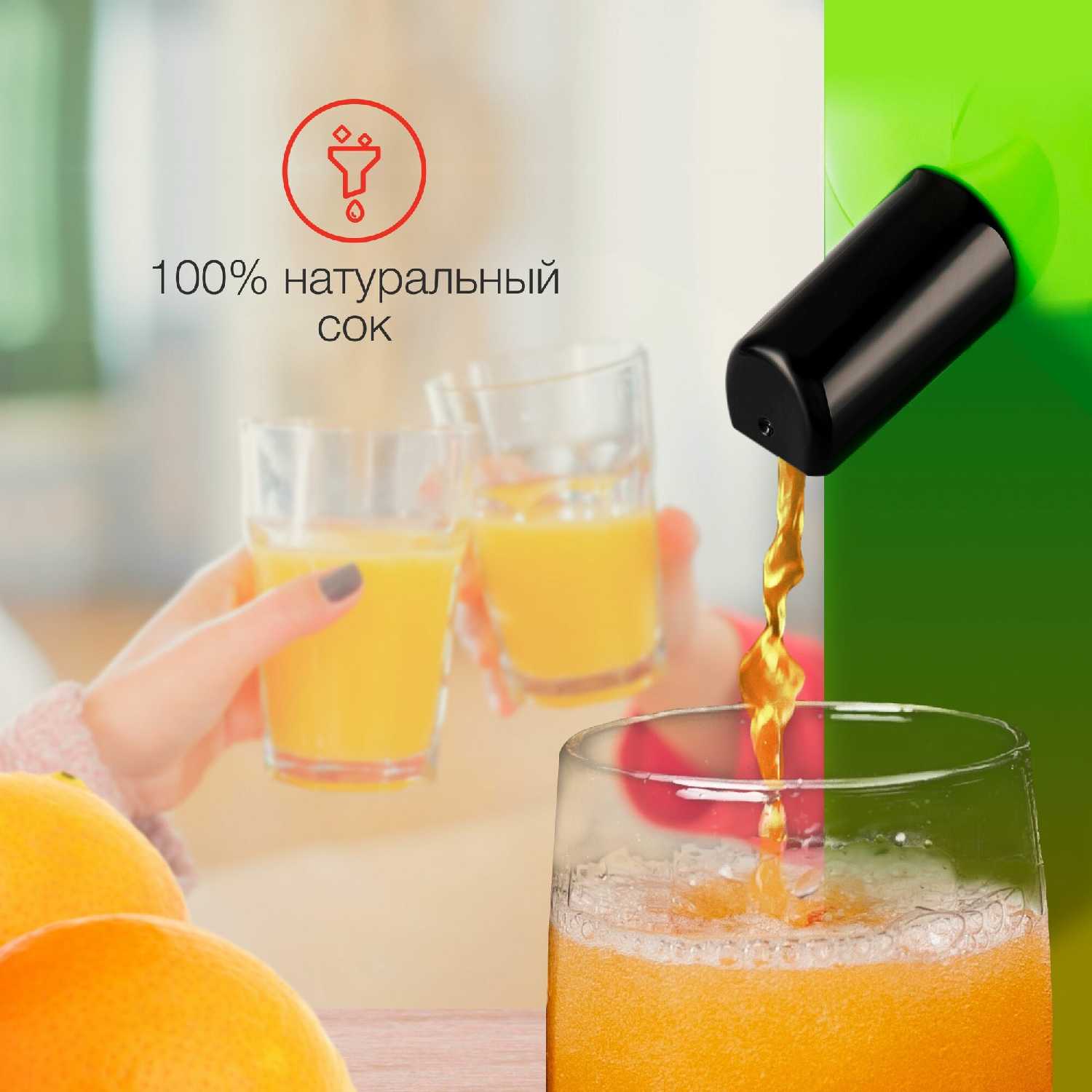 Π‘ΠΎΠΊΠΎΠ²ΡΠΆΠΈΠΌΠ°Π»ΠΊΠ° ΠΈΠ΄Π΅Π°Π»ΡΠ½ΠΎ ΡΠΏΡΠ°Π²Π»ΡΠ΅ΡΡΡ Ρ Π°ΠΏΠ΅Π»ΡΡΠΈΠ½Π°ΠΌΠΈ, Π³ΡΠ΅ΠΉΠΏΡΡΡΡΠ°ΠΌΠΈ ΠΈ ΠΌΠ°Π½Π΄Π°ΡΠΈΠ½Π°ΠΌΠΈ, ΠΏΠΎΠ»Π½ΠΎΡΡΡΡ ΠΎΡΠ΄Π΅Π»ΡΡ ΠΌΡΠΊΠΎΡΡ ΠΈ ΠΊΠΎΡΡΠΎΡΠΊΠΈ. ΠΡΠΎΠ±Π΅Π½Π½ΠΎ ΠΎΡΠΌΠ΅ΡΠ°Π΅ΡΡΡ ΡΠΈΡΡΠΎΡΠ° Π²ΠΊΡΡΠ° Π±Π΅Π· Π³ΠΎΡΠ΅ΡΠΈ ΠΈ ΠΏΠΎΡΡΠΎΡΠΎΠ½Π½ΠΈΡ ΠΏΡΠΈΠ²ΠΊΡΡΠΎΠ². ΠΠ»Ρ ΡΠΈΡΡΡΡΠΎΠ²ΡΡ Π΄ΠΎΡΡΠ°ΡΠΎΡΠ½ΠΎ ΠΏΠ΅ΡΠ²ΠΎΠΉ ΡΠΊΠΎΡΠΎΡΡΠΈ ΡΠ°Π±ΠΎΡΡ. -