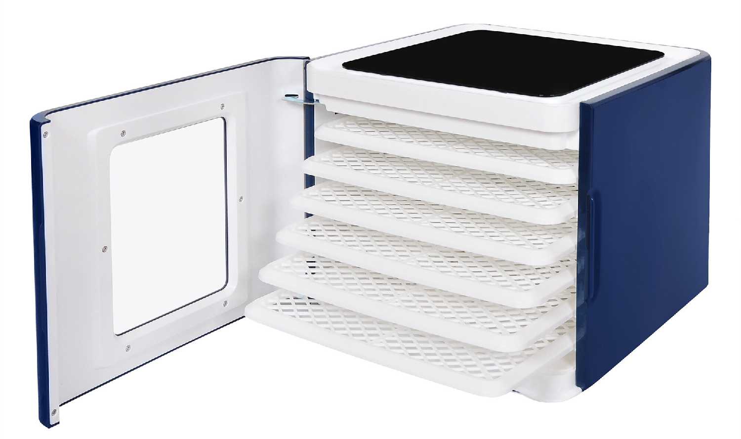 Компактные габариты позволяют разместить устройство даже в малогабаритной кухне. Легкий вес (поддоны можно снимать по одному) упрощает обслуживание и чистку. Автоотключение по таймеру обеспечивает безопасность при работе ночью. Пользователи ценят возможность частичной выгрузки: открыв дверцу, можно извлечь готовые поддоны, не прерывая процесс. Широкий выбор режимов подходит как для нежных трав, так и для плотного мяса. Отдельно отмечается простота мытья пластиковых решеток. -
