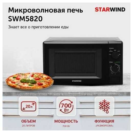 Эта модель микроволновой печи отличный выбор для быстрого и качественного приготовления пищи. - - Некоторые из возможных недостатков микроволновой печи StarWind SWM5820 могут включать в себя: