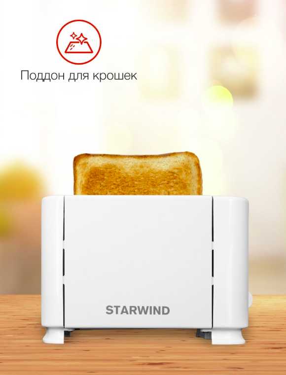 - Съемный поддон упрощает уход за тостером, позволяя быстро удалять crumbs и избегать накопления запаха гари, в отличие от моделей без этой опции.