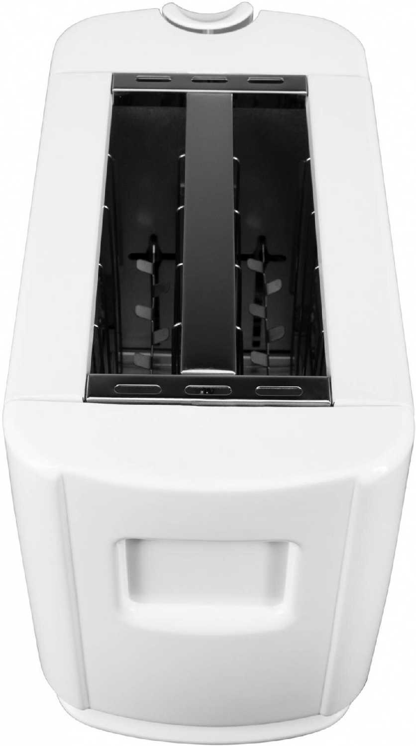 Тостер имеет два независимых отделения, что позволяет одновременно поджаривать два ломтика хлеба. Мощность устройства в 700 Вт обеспечивает достаточно быстрое приготовление, что удобно для утренних завтраков, когда нужно накормить нескольких человек.
