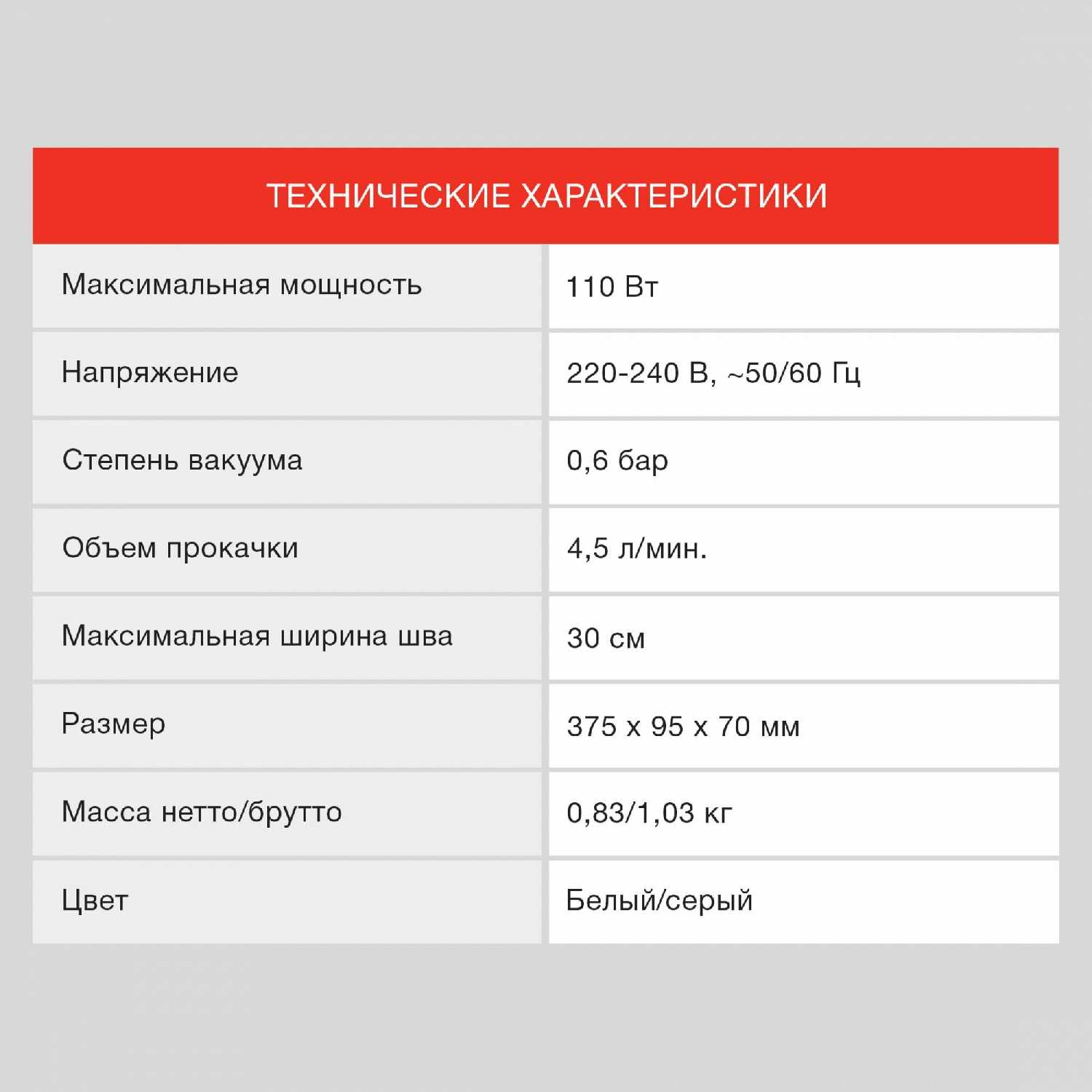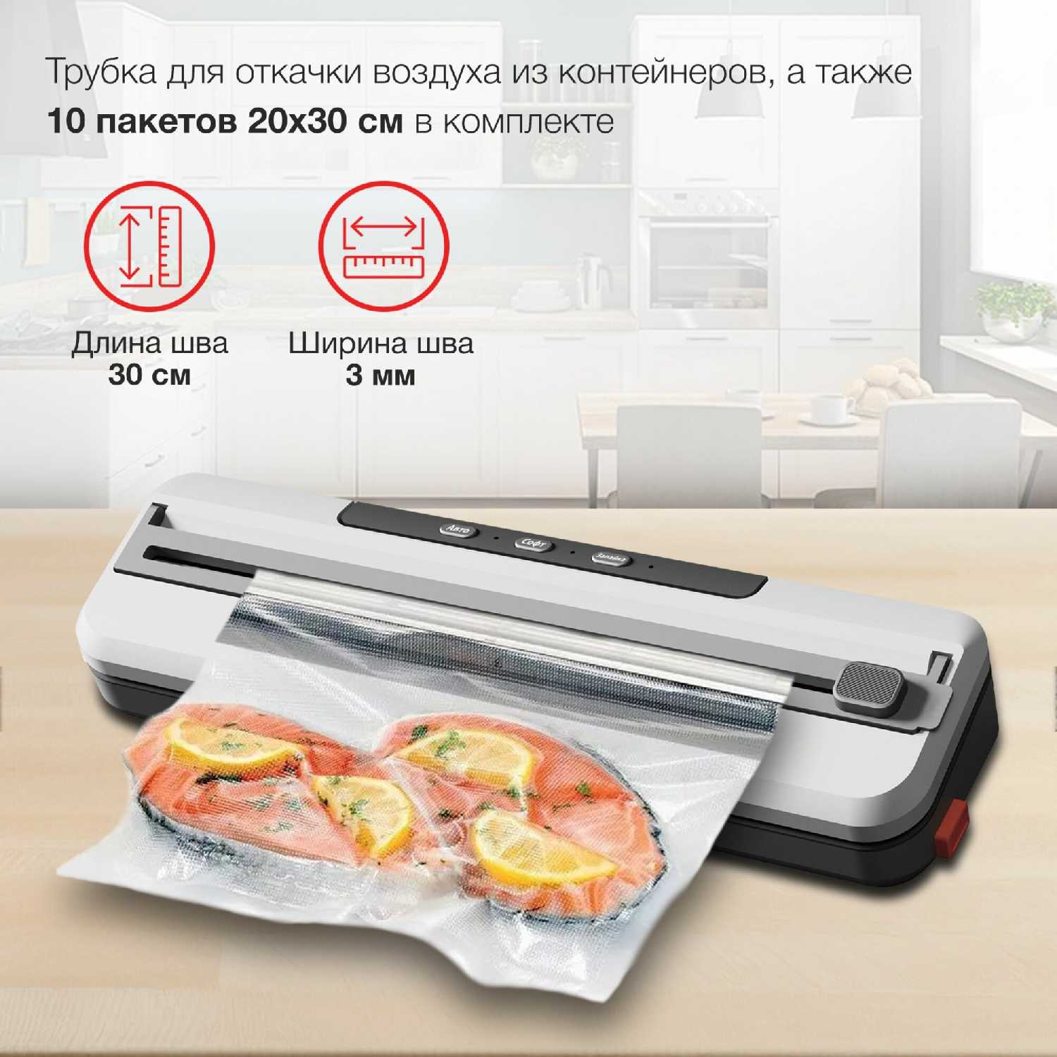 - + Упаковщик для продуктов с мощностью 110 Вт.