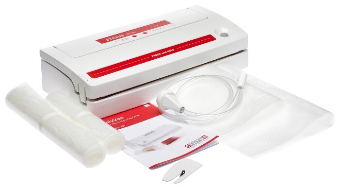| Подробная комплектация : | Вакуумный упаковщик, 3 пакета 20 см x 28 см, 3 пакета 28 см x 36 см, 1 рулон 28 см x 150 см, 1 рулон 20 см x 150 см, 1 насадка для откачивания воздуха из контейнеров, 1 резак для пленки, инструкция |