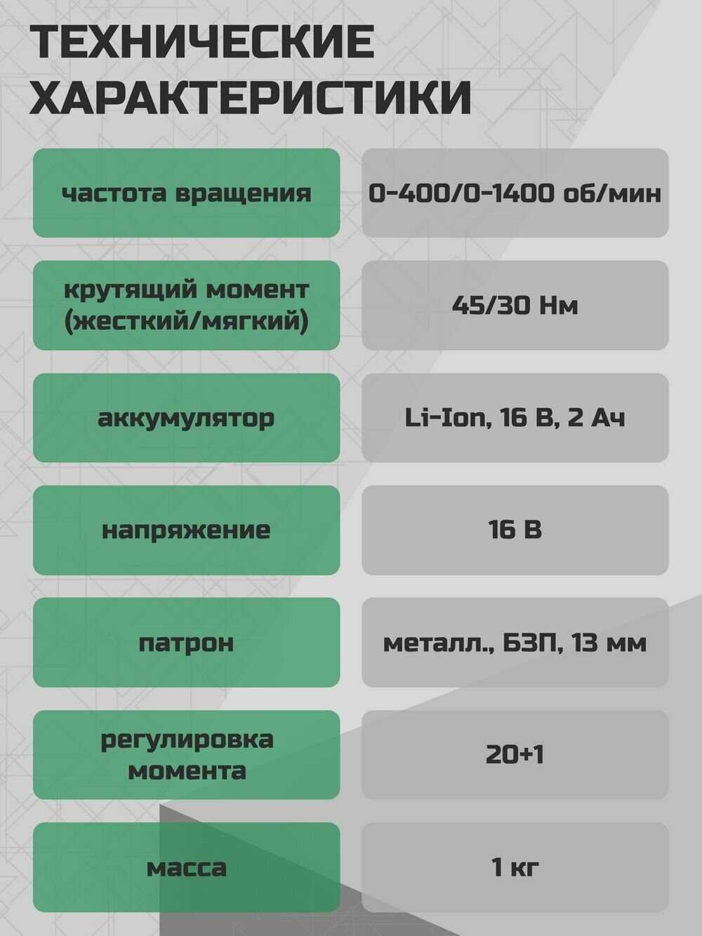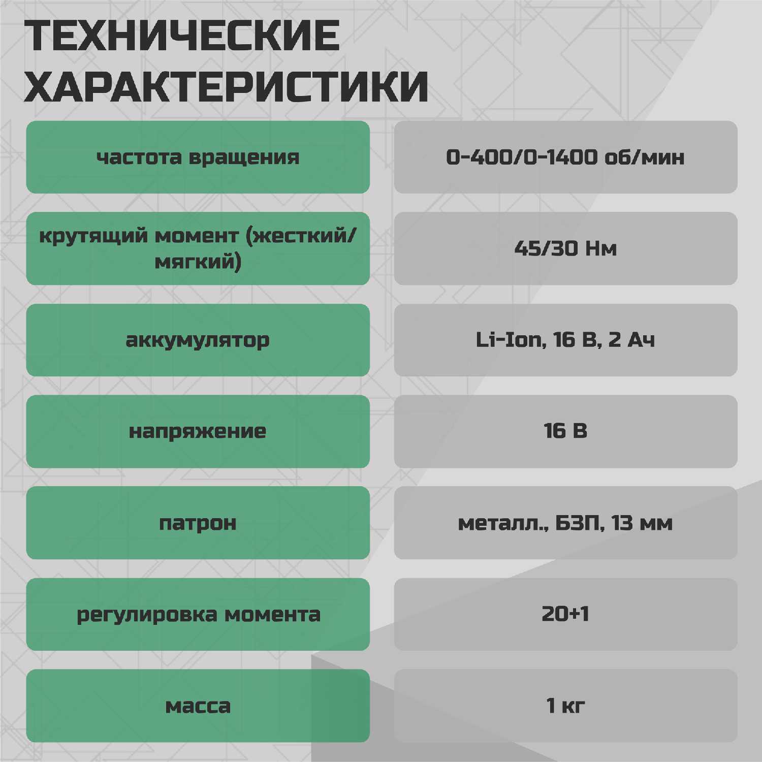 - + Работает отлично, лёгкий,мощный,удобно лежит в руке,батареи хватает надолго,действительно качественный,брал его на замену меттабо.Патрон 13 мм быстрозажимный, бесщеточный движок и высокий крутящий момент 45НМ