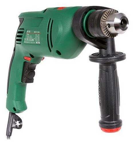 Особенности конструкции : | блокировка кнопки включения, дополнительная рукоятка, лампа точечной подсветки, ограничитель глубины сверления |