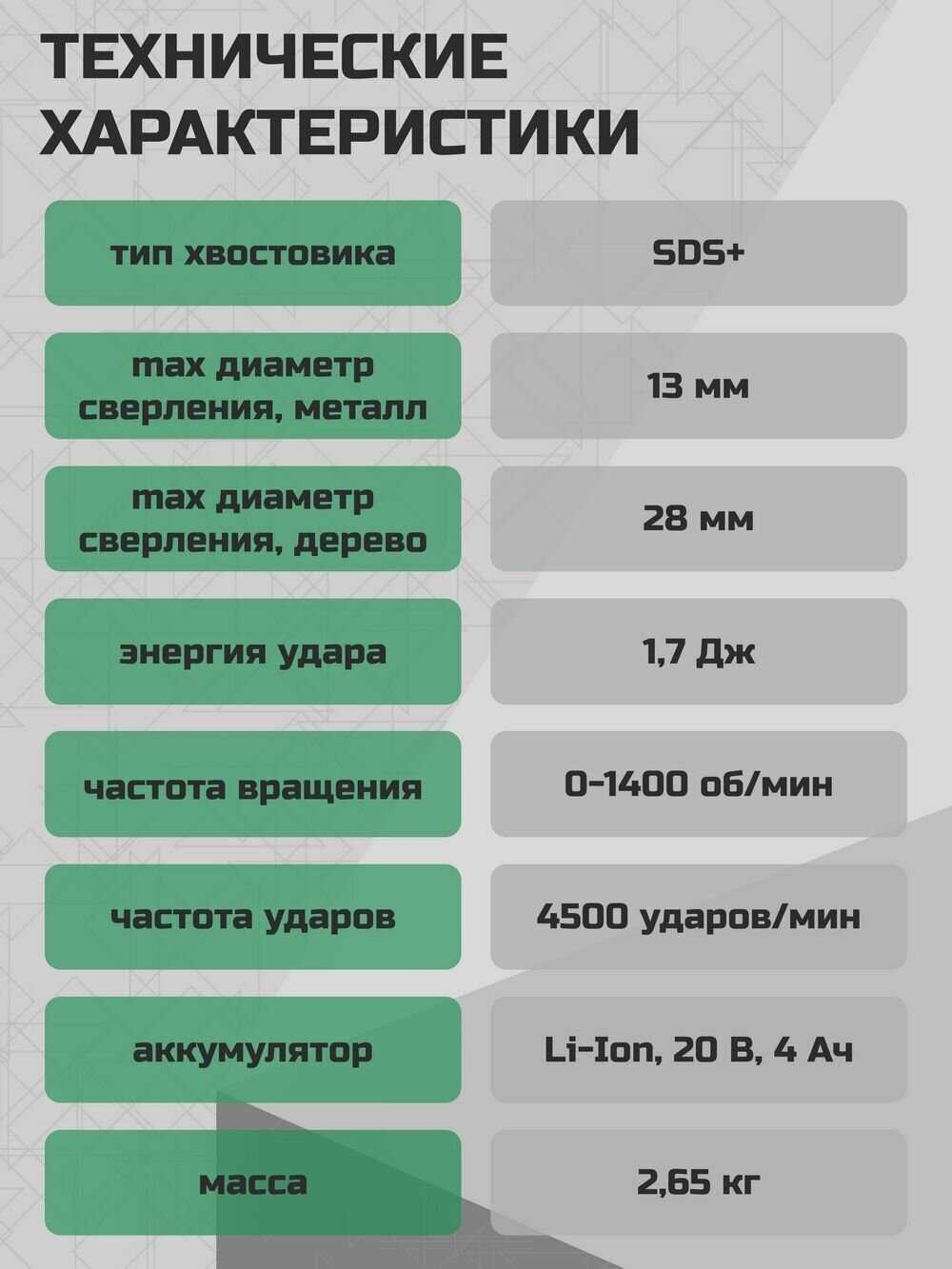 - тип патрона: SDS-Plus