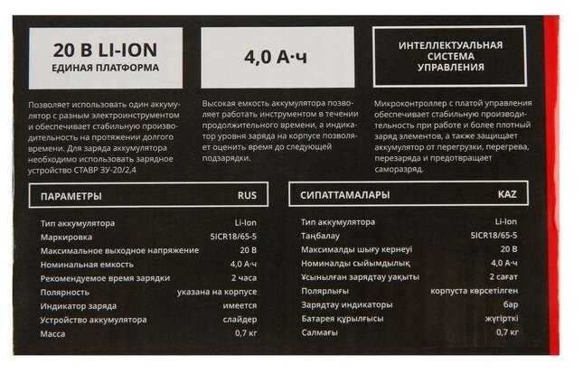 | Дополнительная информация : | позволяет использовать один аккумулятор с разным электроинструментом и обеспечивает стабильную производительность на протяжении долгого времени. |