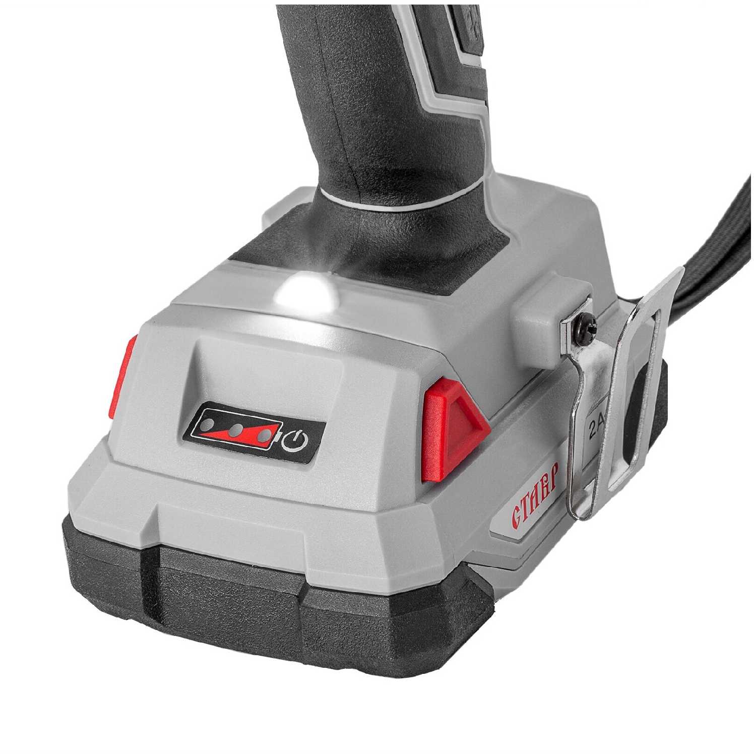 Особенности конструкции : | блокировка кнопки включения, гнездо в корпусе для крепления бит, лампа точечной подсветки, прорезиненная рукоятка, фиксация шпинделя |