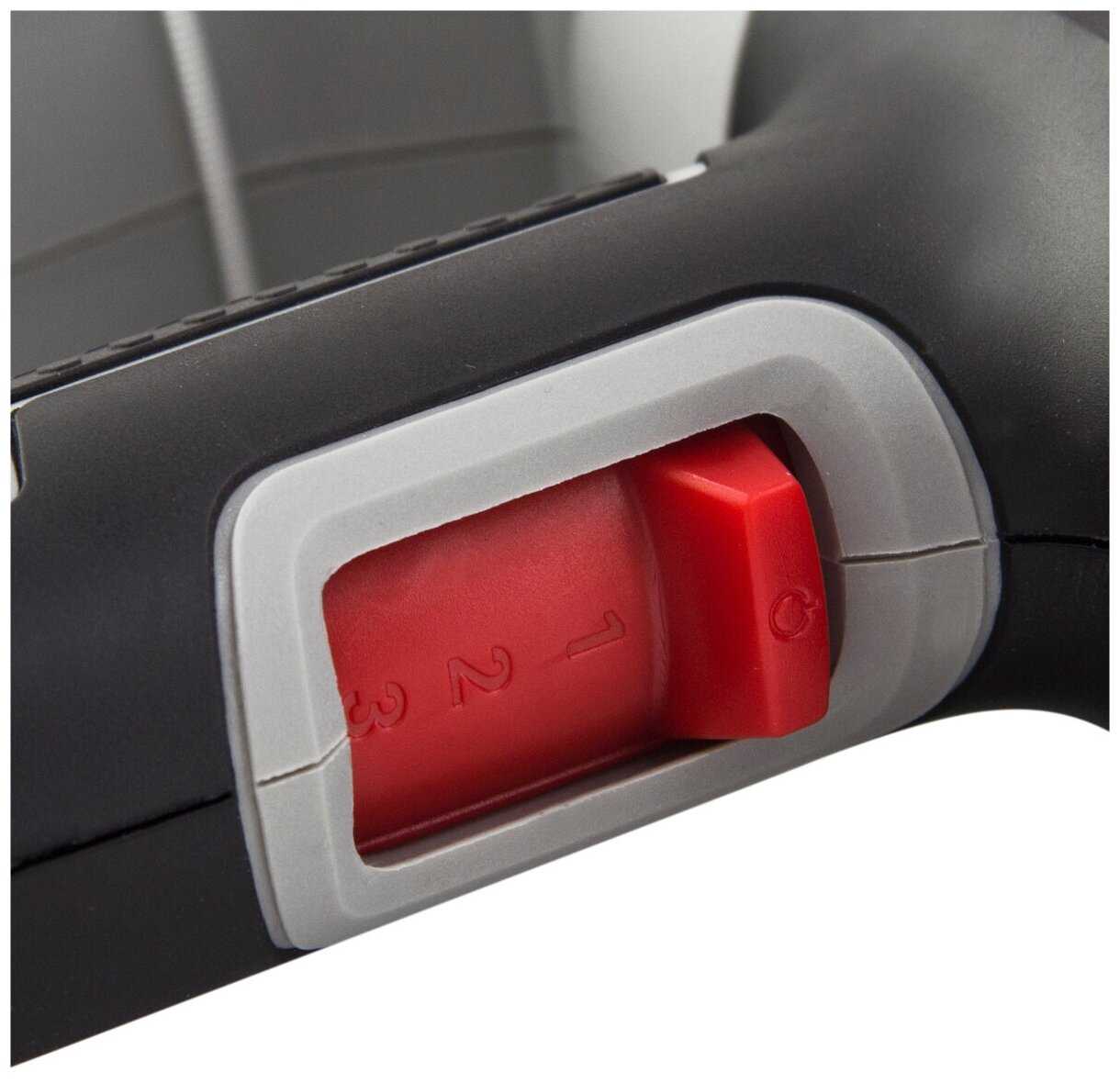 - Переключатель на тыльной стороне ручки требует перехвата инструмента для смены режима.
