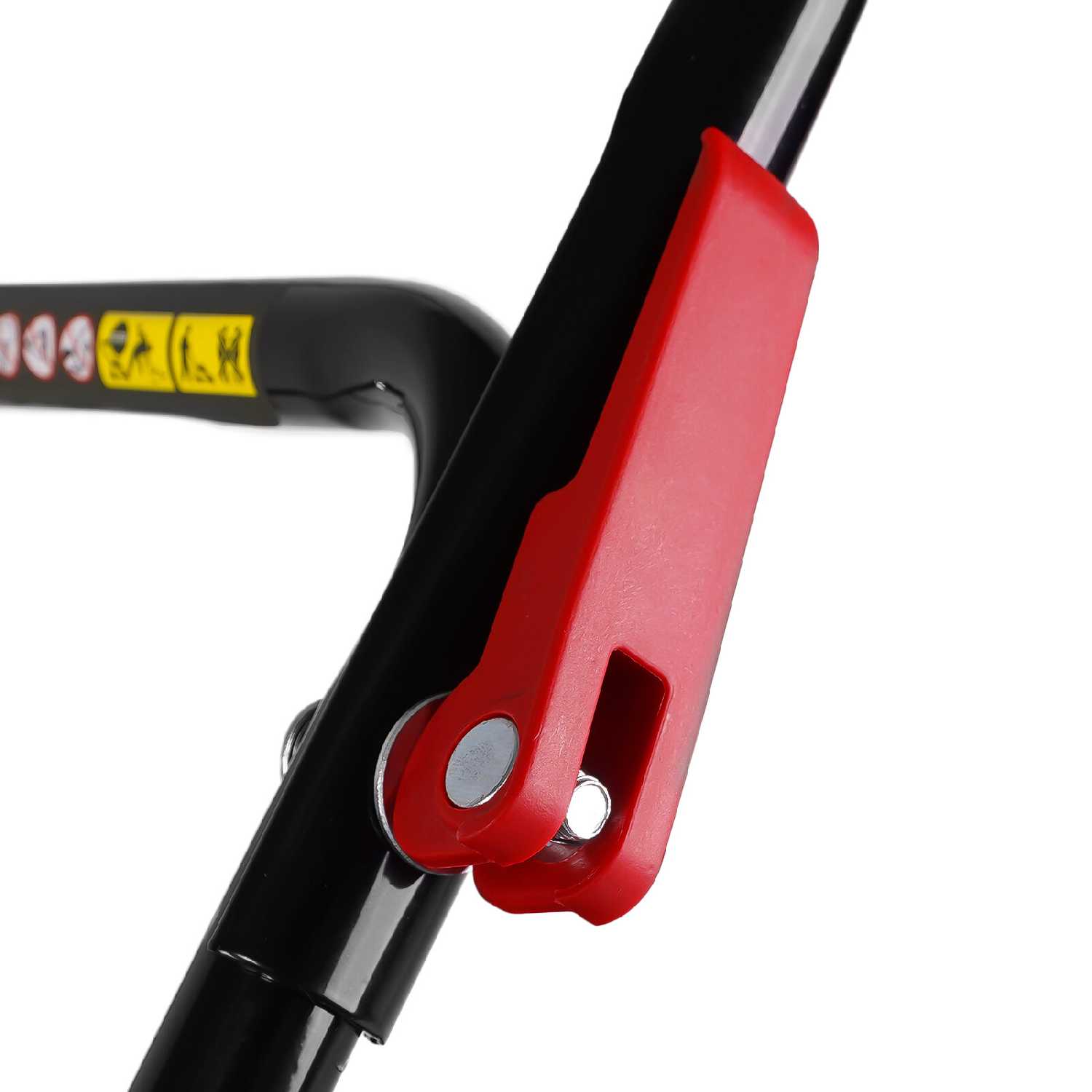 - Складная рукоятка и регулируемая высота позволяют адаптировать под рост оператора, снижая нагрузку на спину во время кошения.