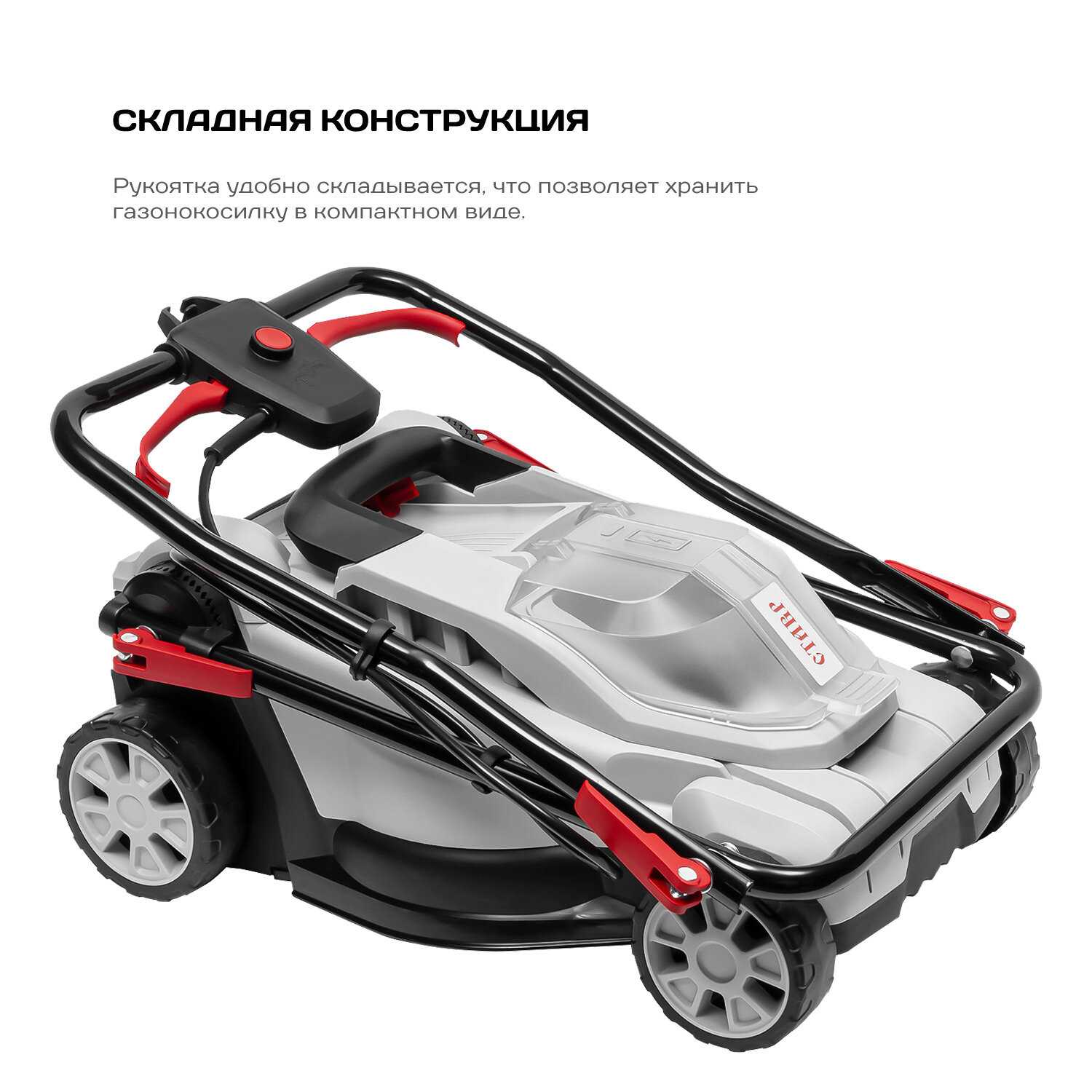 - Регулируемая высота кошения с 5 уровнями для неровных участков: