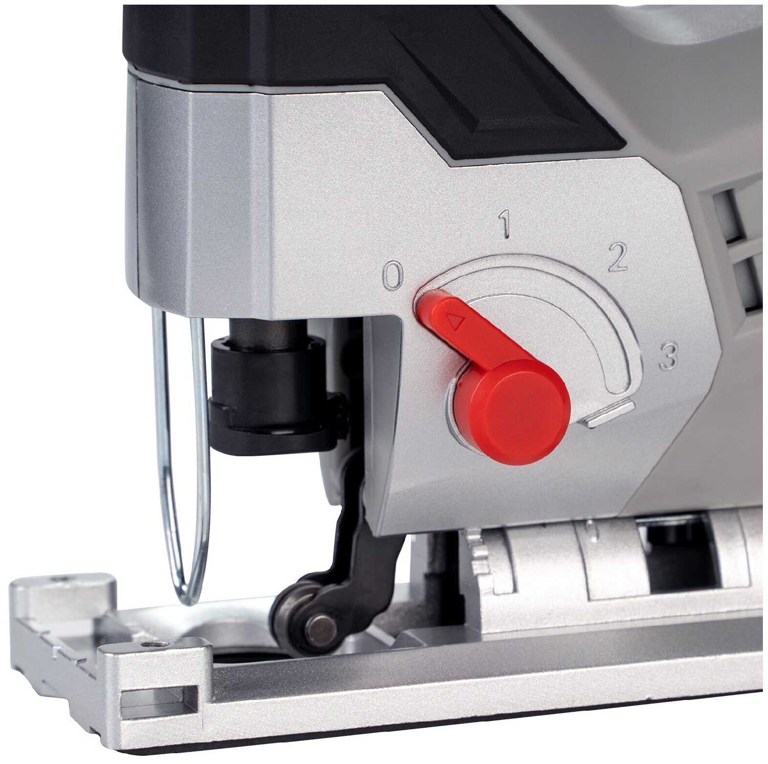 | Особенности конструкции : | быстрозажимное крепление пилки, возможность подключения пылесоса, защитный щиток, обрезиненная рукоятка, подсветка, регулировка наклона подошвы без инструмента, сдув опилок |