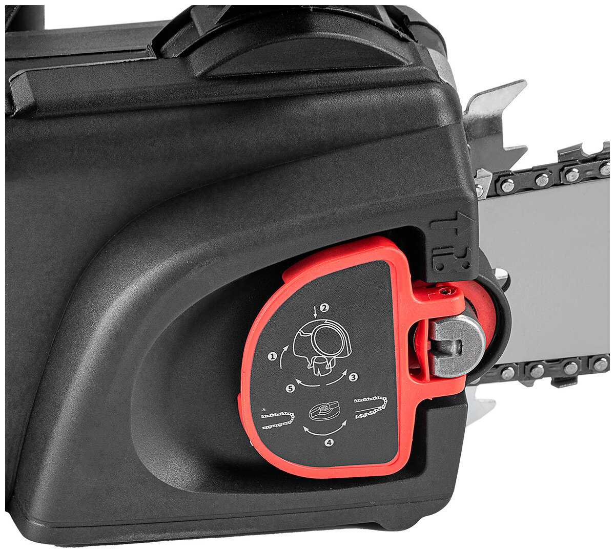 | Особенности конструкции : | бесключевая замена оснастки, прорезиненная рукоять, регулировка натяжения цепи без инструмента |