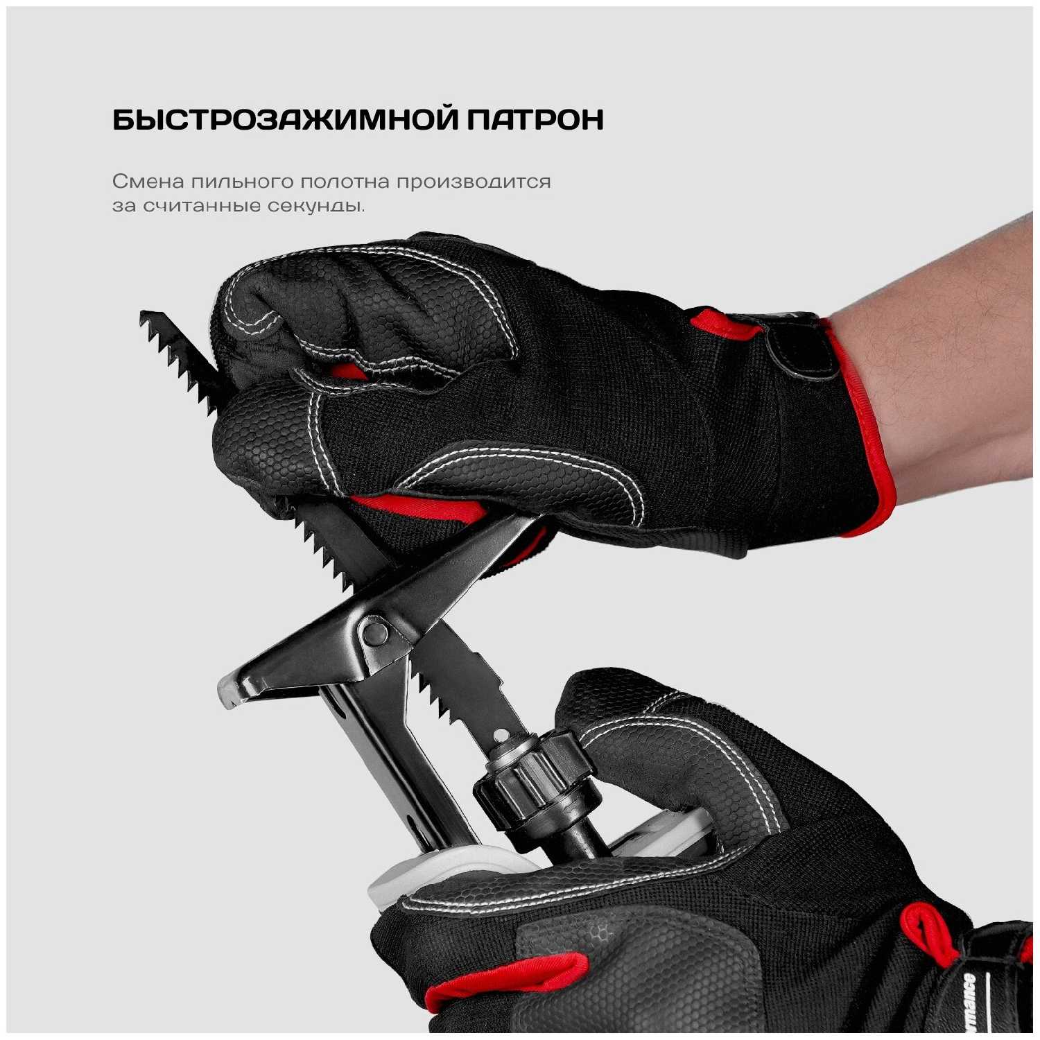 За пятнадцать минут работы двигатель критично нагреться не успевает, и это чрезвычайно радует — есть печальный опыт использования одноручных сабельных пил, в которых моторчик горит почище бубновых фашистов.