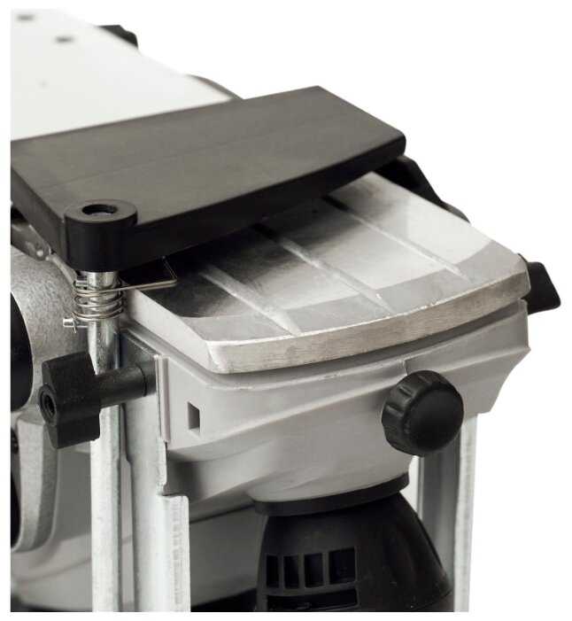 - + Мощный. Строгает не напрягаясь. Ход плавный, приятный. Подошвы выставлены правильно, по крайней мере для моих целей. Выбор стороны выброса стружки.