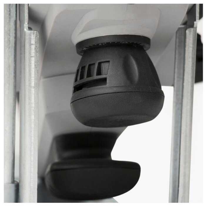 | Особенности конструкции : | возможность подключения пылесоса, возможность стационарного крепления, желобы для снятия фасок, кнопка блокировки выключателя, отделение для ключа |