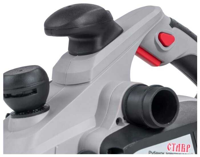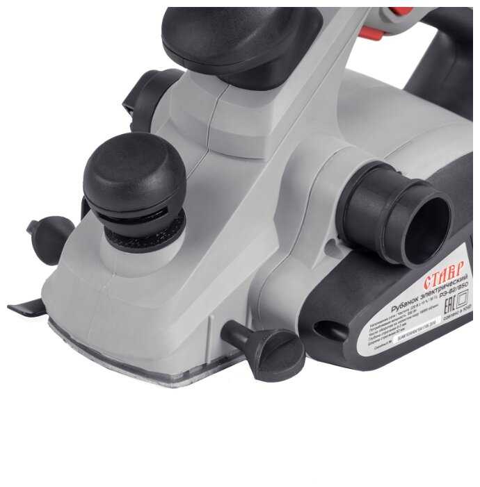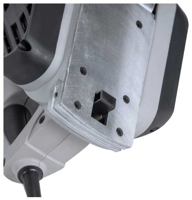 - + Электрический рубанок полностью безопасен в использовании. При изготовлении этого инструмента была создана система дополнительной защиты пользователя. Кнопка включения может быть заблокирована, чтобы вы случайно не нажали ее.
