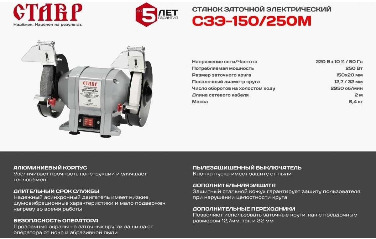 Характеристи СТАВР Станок для заточки инструментов СЗЭ-150/250М