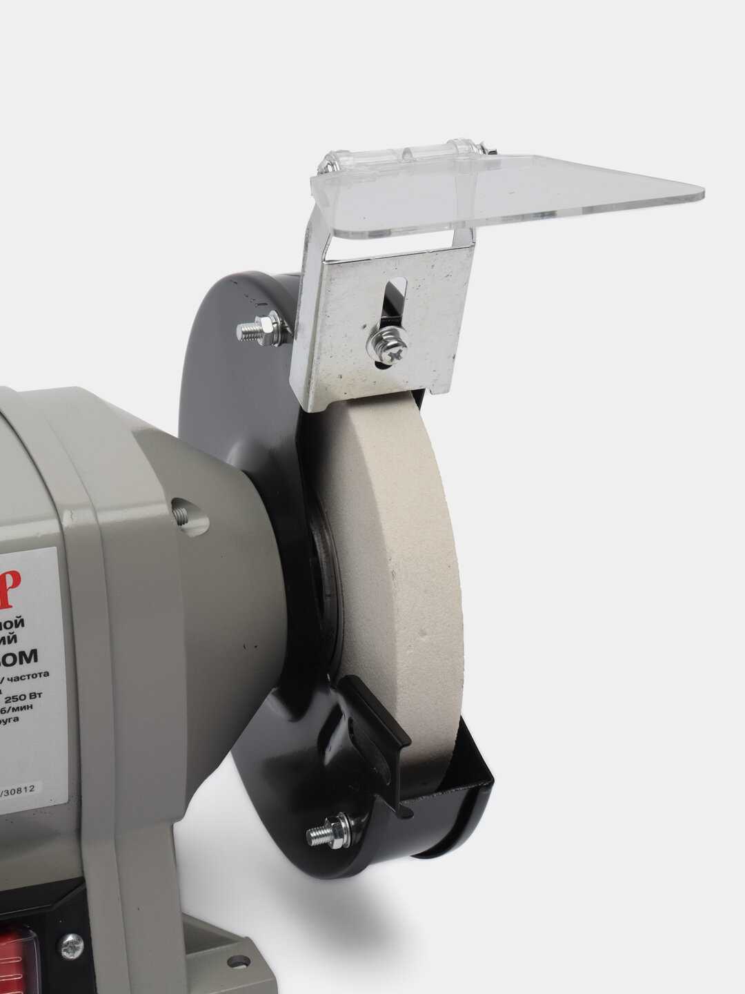 Мощность 250вт, камни шириной 20мм, отсутствие вибрации и шума, достаточно длинный и мягкий шнур питания, хорошо упакован в коробке, толстые шайбы крепления кругов с отверстием нужного диаметра, комплект втулок под круги с посадочным 32 мм, качественная сборка, достаточно ровные круги.