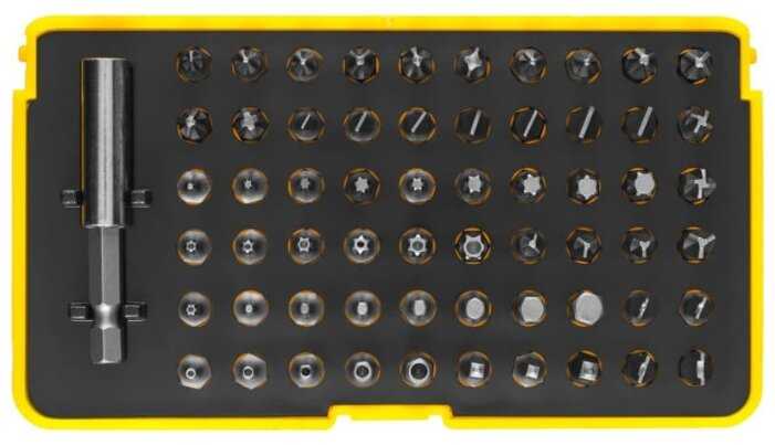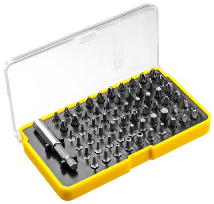 Достаточно полный, для домашнего использования, набор бит в компактном футляре. Немногочисленные (пока) задачи с его помощью решил успешно. Расстроило то, футляр оказался с трещинами в месте крепления крышки и сколько он прослужит в таком виде неизвестно. Если крышка развалится, то биты придется ссыпать в мешочек.