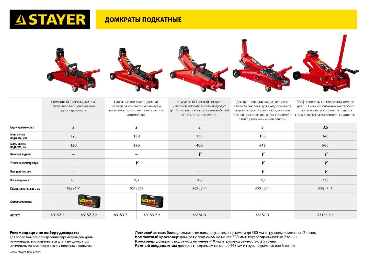 12 отзывов пользователей o STAYER Домкрат подкатной гидравлический (43154-3)