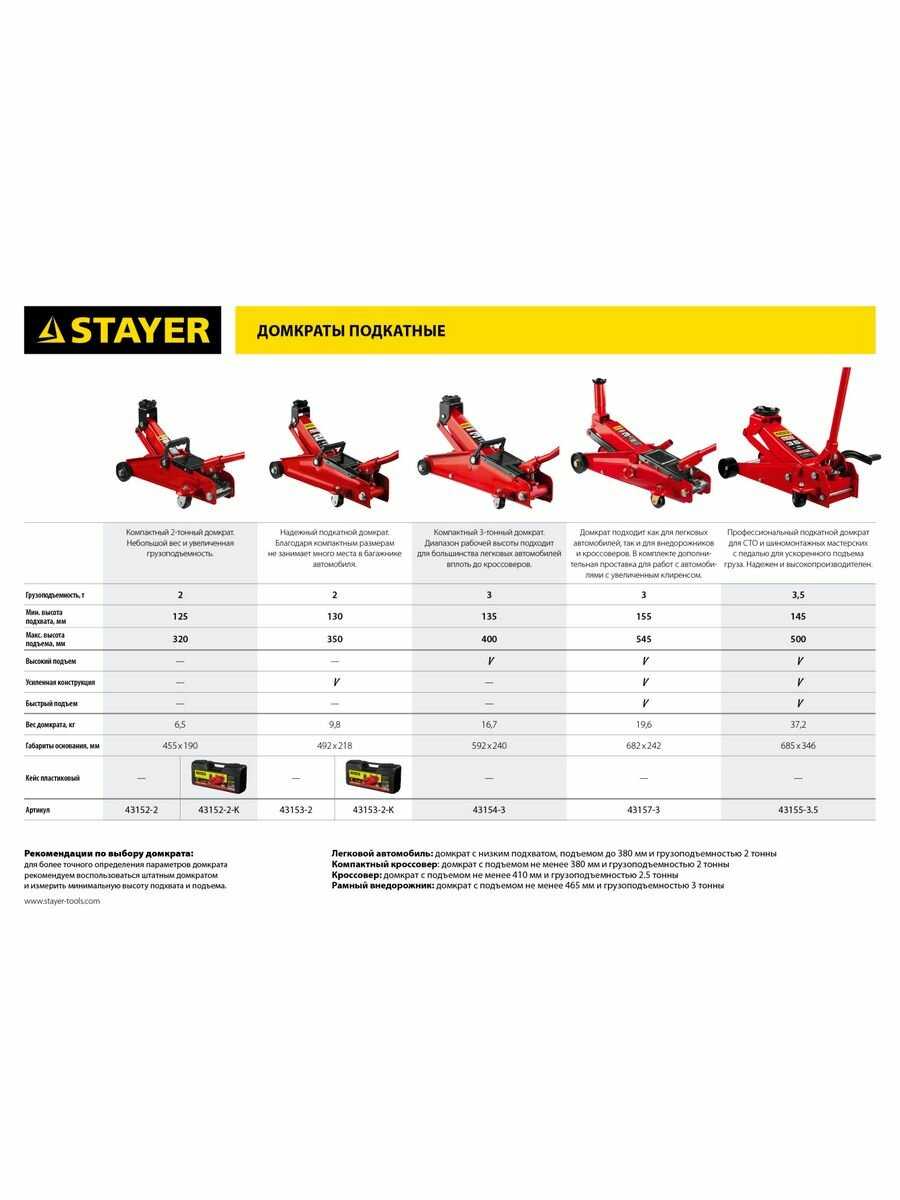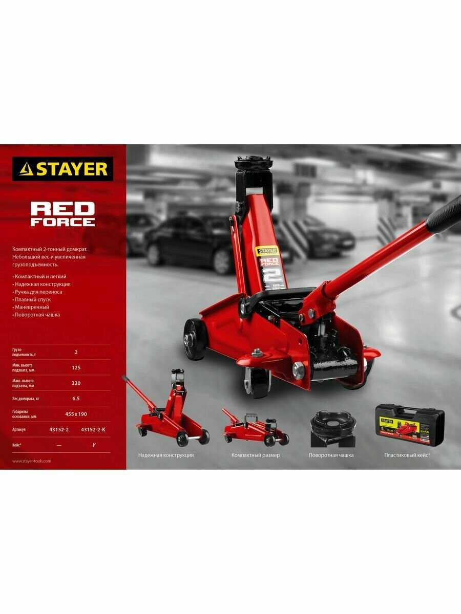 47 отзывов пользователей o STAYER Домкрат подкатной гидравлический для мототехники (43152-2-K)