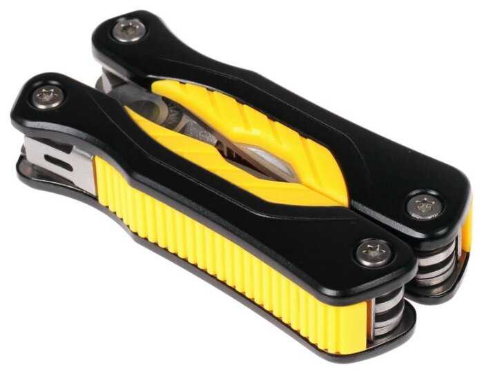Инструменты (функции) : | плоскогубцы кусачки захват для цилиндров и гаек нож напильник рыбочистка отвертка PH отвертка SL (малая) отвертка SL (средняя) открывалка для консервных банок открывалка для бутылок пила по дереву набор из 11 бит адаптер |