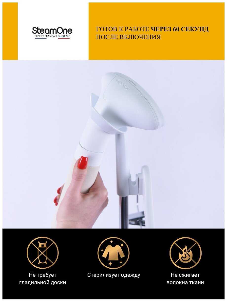 - Устраняет запахи и дезинфицирует одежду за счет высокой температуры пара.