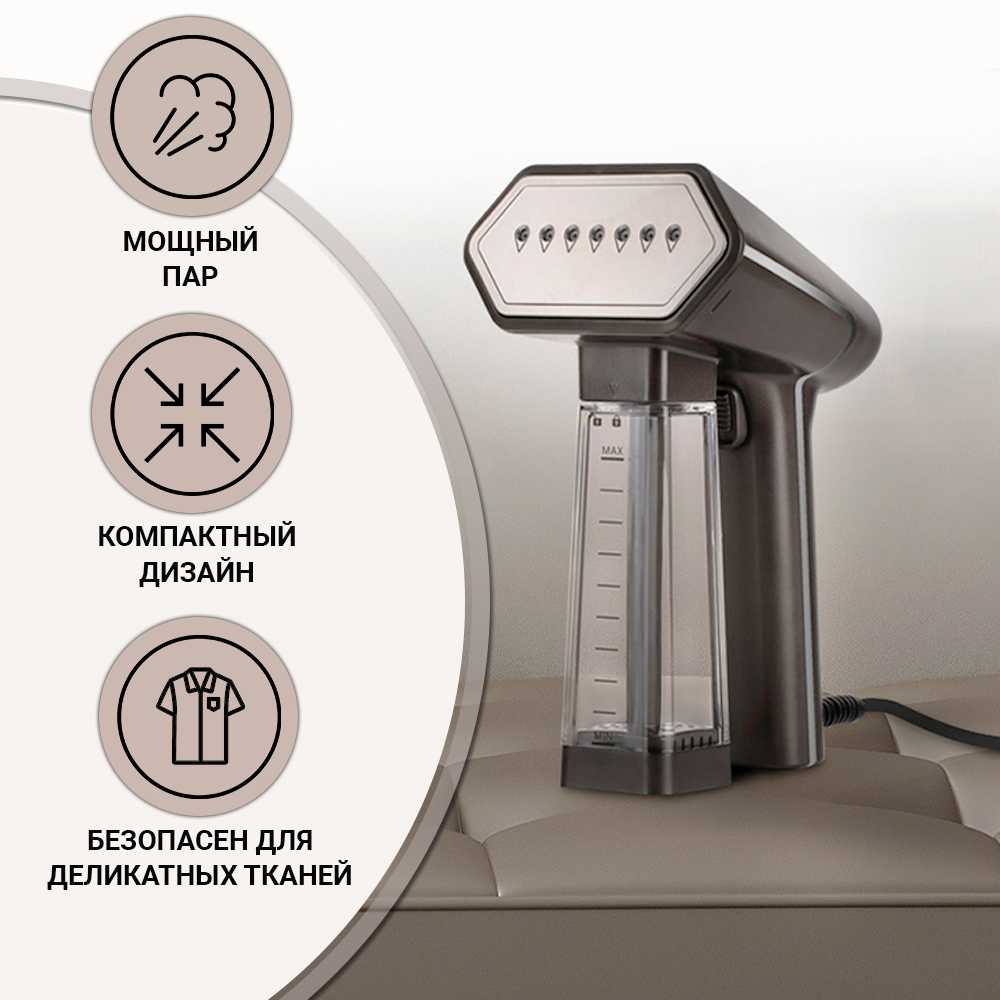 Недостатки и ограничения:Основные минусы связаны с небольшим объёмом резервуара — при интенсивном использовании воду приходится доливать каждые 8–10 минут. Некоторым пользователям не хватает регулировки температуры, особенно при работе с синтетикой. Отдельные отзывы указывают на неудобство трёхметрового шнура в малогабаритных помещениях. Хотя прибор лёгкий, при длительной работе с плотными тканями (например, мужской формой) может потребовать физических усилий. Также отмечается, что для максимального эффекта важно правильно натягивать ткань, что не всегда удобно при обработке крупных изделий вроде штор.