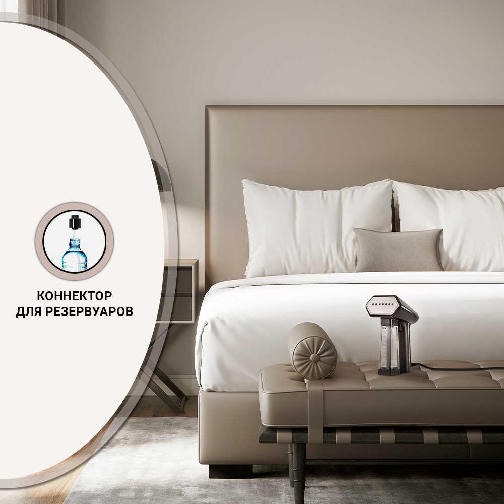 Да, в комплекте есть специальный коннектор для стандартных бутылочных горлышек. Это удобно в поездках или при длительной работе - вы можете подключить любую подходящую емкость с водой, экономя место в дорожной сумке. -