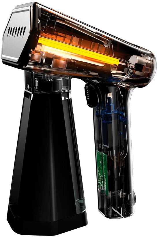Конструкция продумана для комфортного использования: легкий корпус удобно лежит в руке, а длинный 3-метровый кабель обеспечивает свободу перемещения по комнате. Устойчивая подставка позволяет безопасно размещать устройство на столе в вертикальном положении. Механическое управление интуитивно понятно, а функция непрерывной подачи пара без удержания кнопки снижает усталость руки при длительной работе. -