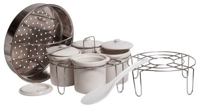 - для приготовления йогурта в комплект входят керамические горшочки с крышечками (с удобной подставкой-держателем), лопатка и прочие приспособления),