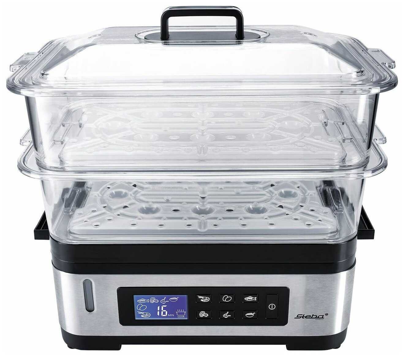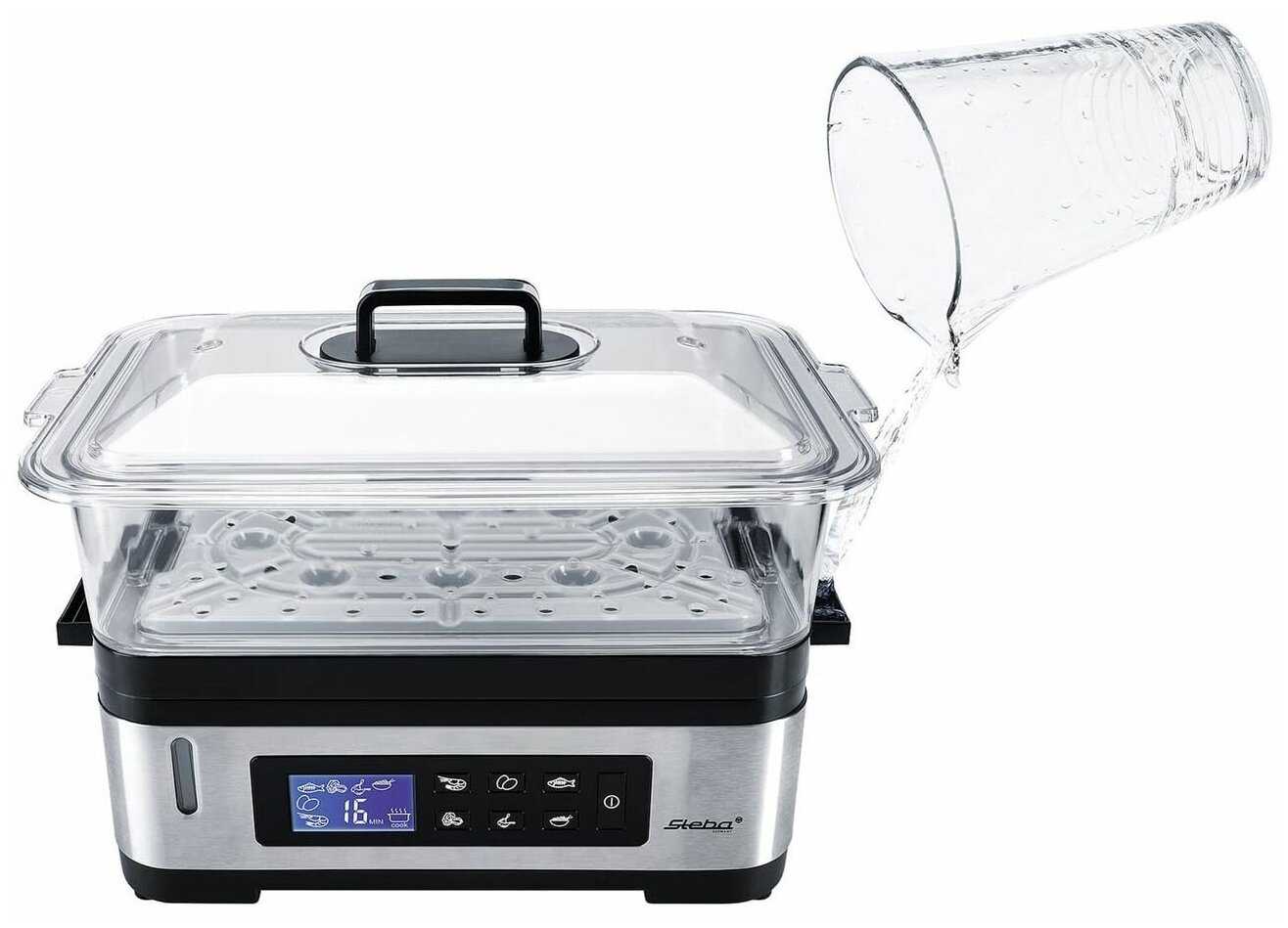| Особенности конструкции : | дисплей, индикатор включения, индикатор уровня воды, съемные решетки, углубления для варки яиц, чаша для риса |