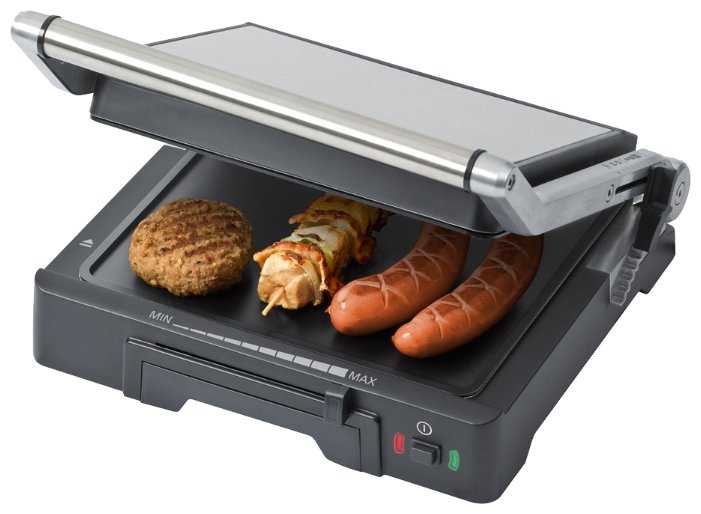 | Особенности : | антипригарное покрытие, контактный гриль, крышка, поддон для сбора жира, съемные пластины |