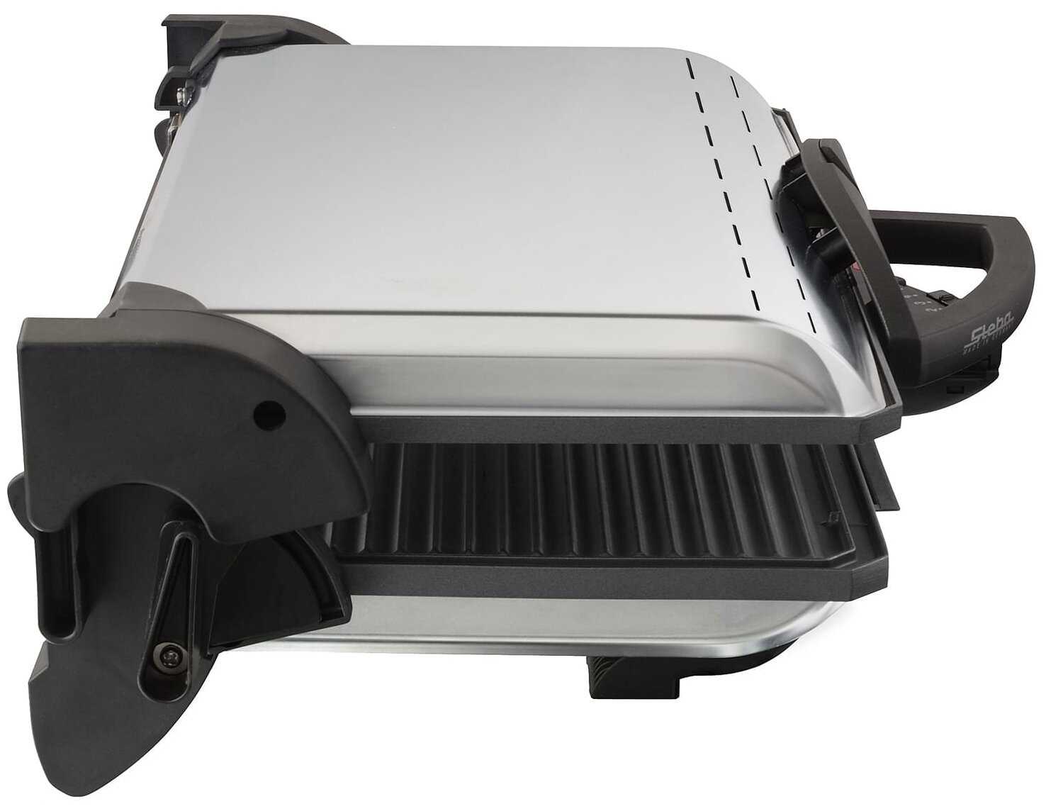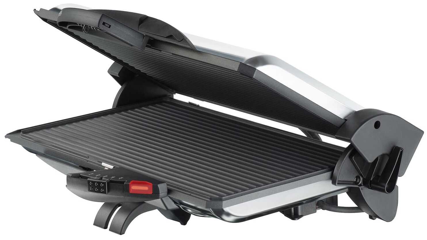 | Особенности : | антипригарное покрытие, контактный гриль, крышка, поддон для сбора жира, регулировка высоты верхней панели, решетка, съемные пластины |